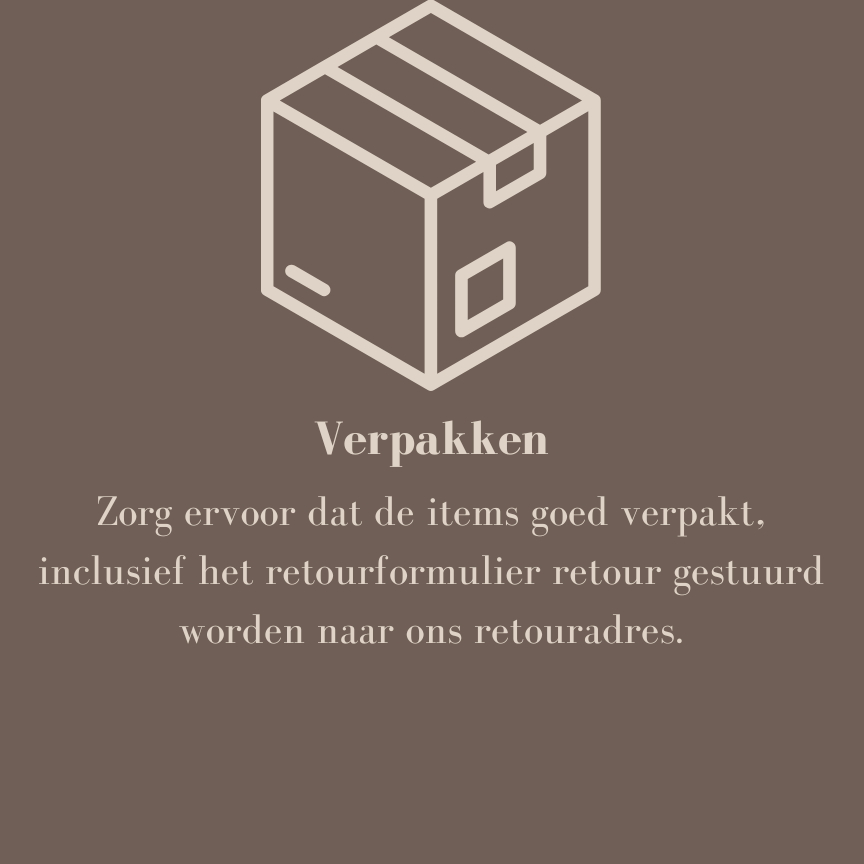 3. Artikelen moeten worden geretourneerd in de originele verpakking, inclusief labels, tags en eventuele beschermverpakkingen.