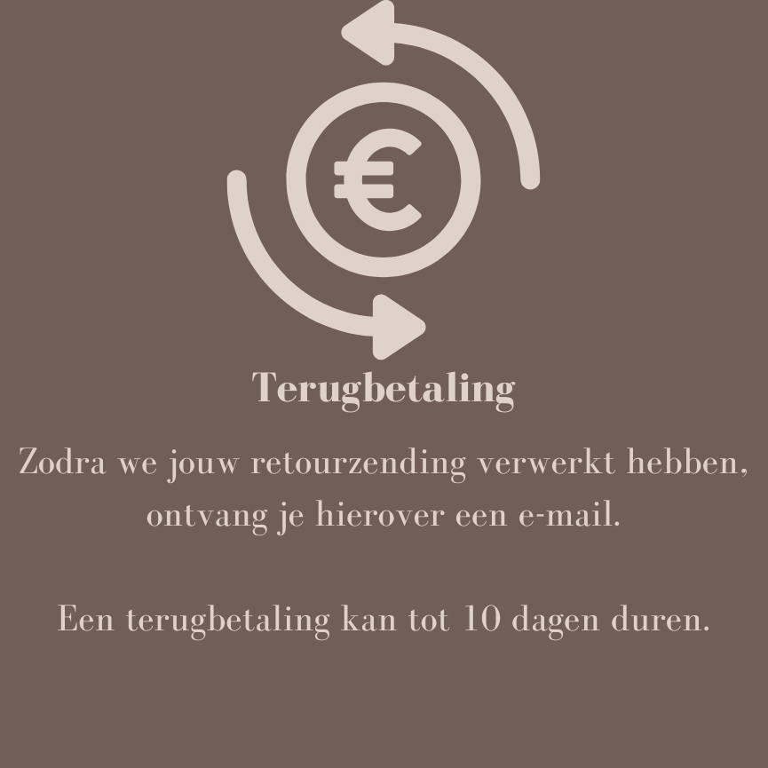 Na ontvangst en controle van je retour kan het tot 10 dagen duren voor de terugbetaling wordt verwerkt.